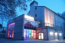 Von der Decke hängende, LED-beleuchtete Acrylglasröhren interagieren mit Skulpturen, die vom Boden aufsteigen und das Foyer gliedern. Bis auf weiteres in Köln zu sehen.