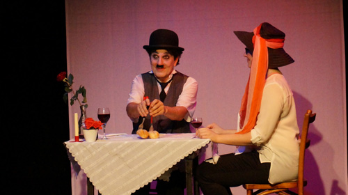 Für etwa 80 Minuten lässt der Pantomime Peter Mim am Freitag die Stummfilmikone Charlie Chaplin auf der kleinen Bühne des Theaters im Bauturm wieder auferstehen. Kein einfaches Unterfangen, denn Chaplin war ein Meister des komödiantischen Slapstick. Auch wenn Mim dessen Watschelgang, Mimik und Gestik mit unglaublicher Präzision beherrscht, gelingt sein Experiment nur teilweise: Mit dem dünnen Spazierstock, der passenden Kleidung und nur wenigen Requisiten wie ein paar Hüte und einem Esstisch, wirkt er gerade zu Beginn seiner Vorführung etwas vereinsamt. Unterlegt mit der originalen Filmmusik spielt er die berühmtesten Szenen aus „Moderne Zeiten“, „The Kid“, „Der Große Diktator“ und „Lichter der Großstadt“ nach.