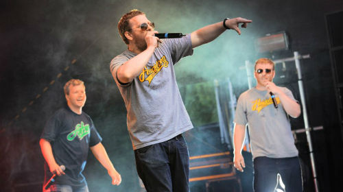 Die Mütze schief, die Hose tief – das Publikum am Freitag war auf „Partysafari“ und unterstützte tatkräftig die Hip-Hopper „Blumentopf“ aus München, die einige ihrer bis dato unveröffentlichten Songs zum Besten gaben. Loyal rappten sie zusammen sogar einen Song mit den vorher aufgetretenen Stieber Twins & Aphroe, die eine große Fanbase mitbrachten.