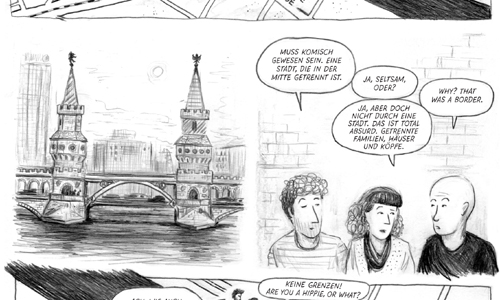 Danach übernimmt der aus dem Iran stammende Hamed Eshrat den Abend. „Venustransit“ (avant-Verlag) lautet der Titel seines Comic-Debuts. In kraftvollen Schwarz-weiß-Bildern eröffnet er uns die Welt des in Berlin lebenden Ben Rama, welcher um die dreißig Jahre alt ist und sein Dasein als Programmierer fristet. Doch schlägt sein kreatives Herz eigentlich für die Zeichnerei, welcher er nicht mehr so richtig nachkommt. Aufgrund seiner chronisch miesen Laune verliert er dann auch noch seine große Liebe und löst sich zunehmend in einer Sinnkrise auf. In den Szenen des Berliner Stadtlebens findet man vertraute Lebens-Momente. Diskussionen um den Sinngehalt von Bio-Chips, ein unangenehmes lautes Schweigen bei einer Taxifahrt, das gute Gefühl, dass dir der Kiosk deines Vertrauens vermittelt, und Aussagen wie: „Wir wollen doch alle nur geliebt werden.“