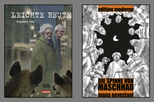 Miguelanxo Prado widmet sich nach „Ardalén“ erneut dem Schicksal der Alten, nur sind sie hier zugleich Opfer und Täter. Die Wirtschaftskrise in Spanien hat die Menschen in die Kreditfalle getrieben, für die Banken waren sie „Leichte Beute“. Kommissarin Tabares und Kollege Sotillo sehen sich einer Serie von Morden an Bankern gegenüber. Langsam wird klar, dass die Täter betrogene Rentner sein könnten. Auf welcher Seite Prados Sympathien stehen, ist klar. Spannend und mit lakonischem Witz verschafft er den Betrogenen mit seiner ungewöhnlichen Geschichte eine Stimme (Carlsen). Auch im Zentrum des Comics „Die Spinne von Maschhad“ steht ein Serienmörder. Sympathie liegt Mana Neyestani allerdings fern. Sein Comic basiert auf einer Dokumentation zu dem Fall von Said Hanai, der von 2000 bis 2001 mindestens sechzehn Prostituierte tötete, um seine Stadt zu „reinigen“. Interviews mit dem Richter, der Familie und nicht zuletzt dem Täter geben Einblicke in nicht nur einen von moralischem Eifer besessenen Täter, sondern eine ganze Gesellschaft, die dies ermöglicht (Edition Moderne). „Illegal – Die Geschichte einer Flucht“ ist ein Jugendbuch über eine Flucht nach Europa. Zwei Brüder suchen ihre Schwester, die versucht hat, nach Europa zu gelangen, aber nun verschollen ist. Geschrieben von Eoin Colfer („Artemis Fowl“) und Andrew Donkin und gezeichnet von Giovanni Rigano, schildert der Comic jugendgerecht und empathisch, aber ungeschönt ein typisches Flüchtlingsschicksal (Rowohlt).