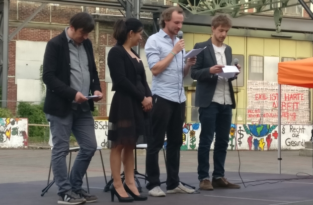 Der Anlass ist die Eröffnung des ersten Europäischen Literaturfestivals Köln-Kalk, organisiert vom Kölner Verlag Parasitenpresse, der vor allem auf Lyrik spezialisiert ist, der Kölner Literaturzeitschrift KLiteratur, dem Integrationshaus e.V. – zugleich auch Festivalzentrum – und dem Kunts e.V., einem gemeinnützigen Verein zur Förderung von Kunst und Kultur auf der rechten Rheinseite. Man wolle, so Adrian Kasnitz, Leiter der Parasitenpresse, vor dem Hintergrund der Europawahlen gegen den aufkommenden Populismus, Nationalismus und Rassismus agieren und „möglichst viele Stimmen und Länder zusammenzubringen“ – Europa sei ein Ort der vielen Sprachen.
