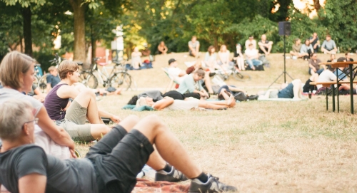 ES: Wir haben alle unsere spezifischen Aufgaben; Mario zum Beispiel kümmert sich um die Technik, die Musik und um unseren Online-Auftritt, zu dem wir alle aber natürlich unseren Senf dazu geben. Der größte Teil unserer Kommunikation läuft online ab – egal, ob es ums Programm, die Förderung oder die Technik geht. Dadurch bleibt die Planung übersichtlich und für jeden von uns nachvollziehbar. Wenn mal was in Vergessenheit gerät, reicht ein Strg+F. Wir treffen uns aber natürlich auch ab und zu, am liebsten im BüZe-Park – oder auf Martins Balkon.