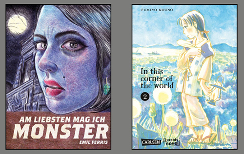 2016 wurde Fumiyo Kounos zehn Jahre alter Manga „In this Corner of the World“ sehr erfolgreich als Anime verfilmt. Erzählt wird die Geschichte der jungen, herzensguten und etwas naiven Suzu, die während des Zweiten Weltkriegs verheiratet wird und in der neuen Familie ihres Mannes ihren Platz finden muss. Währenddessen rückt der Krieg immer näher an den Alltag auf dem Land. In den Episoden kontrastiert Kouno zunehmend die beiden Ebenen – Alltag und Kriegszustand und erzählt auf tragikomische Art vom schweren Landleben, gesellschaftlichen Konventionen und Nationalismus. Die ersten beiden Bände sind nun auf Deutsch erschienen (Carlsen).