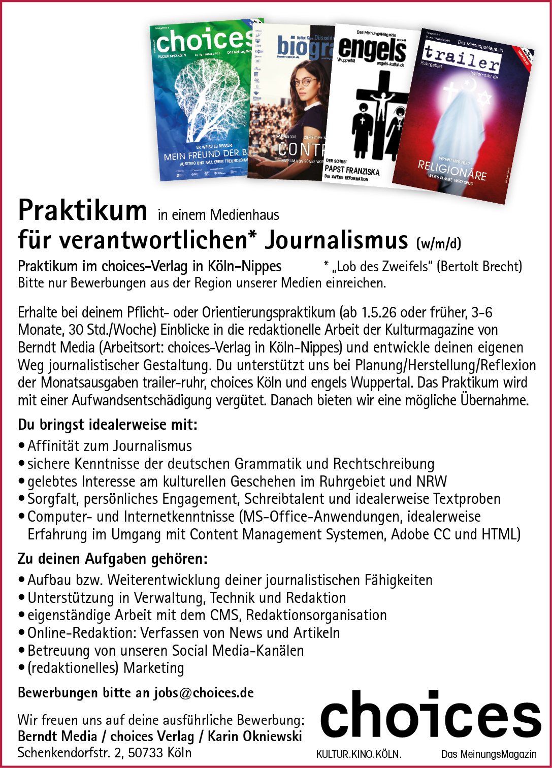 Dafür steht die choicesVerantwortlicher JournalismusWir brauchen euch jetzt!