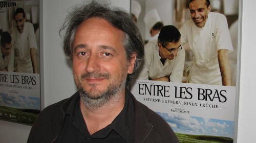 Daniel Malbert, der Leiter des Institut Français in Köln, moderierte die Veranstaltung und fungierte als Übersetzer, obwohl die prominenten französischen Gäste allesamt auch Deutsch sprachen. Regisseur Paul Lacoste erläuterte, dass es ihm bei seinem Film in erster Linie um die Vater-Sohn-Beziehung gegangen sei und deswegen auch kaum Personen außerhalb der Familie zu Wort kommen. Dass die Bras-Küche auch seit 30 Jahren eine ebenso erfolgreiche Filiale im japanischen Toya unterhält, kam Lacoste für seinen Film sehr gelegen: „Mit der in Japan angesiedelten Episode wollte ich den Vater-Sohn-Konflikt etwas entfremden.“ Eine latente Anspannung zwischen den Generationen ist in der Tat allgegenwärtig, da Michel Bras hohe Erwartungen und Ansprüche mit einer kühlen Strenge an seinen Sohn Sébastien stellt. Dieser ist, so die Meinung des langjährigen Bras-Mitarbeiters Yuenn Hue, wesentlich realistischer eingestellt als sein Vater, obwohl er nun, nach Übernahme des Drei-Sterne-Restaurants, ebenfalls sehr kreativ arbeiten muss.